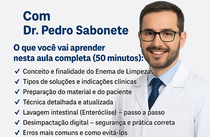 Aprenda passo a passo como executar Clister/Enema de Limpeza, Lavagem Intestinal, e Desimpactação Digital, de forma segura, eficaz e dentro dos padrões modernos da prática clínica.